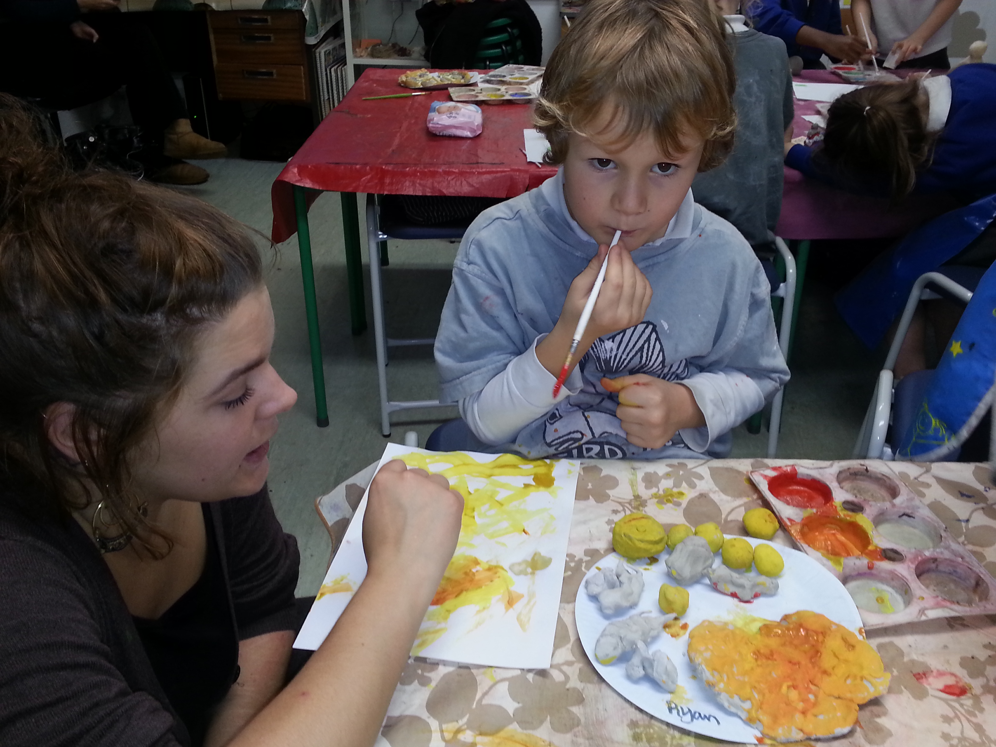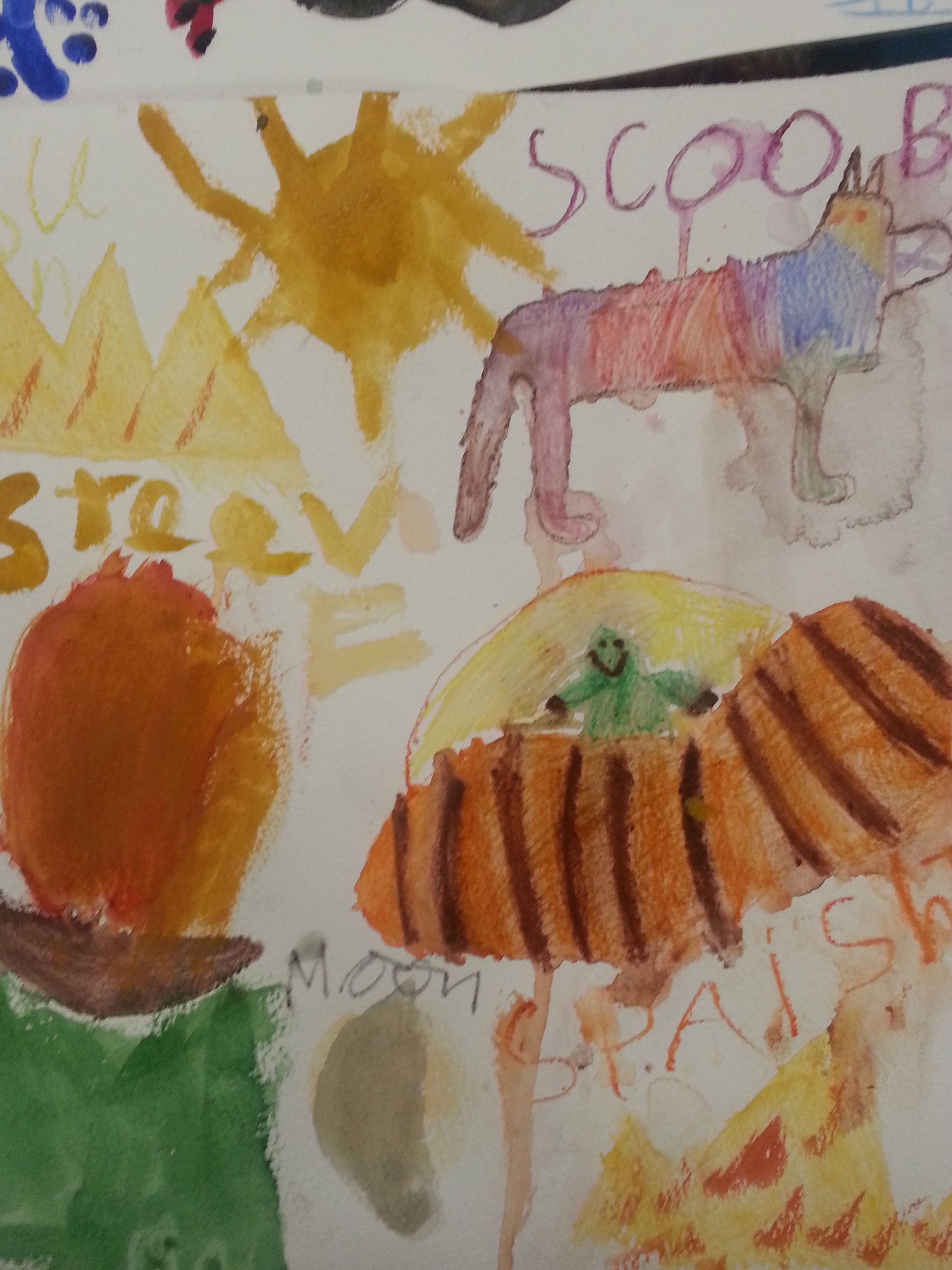 I ask the children to lie on the floor and relax and took them on a meditative journey by telling them a story about a journey they were in and in the story they became different animals , including a bird that flew to a mountain and found a cave ….on entering the cave , they found a long hallway with many doors, one with their name on it. On opening the door they experienced their special place . these are some of the wonderful drawings the children did to explain their journey and special place.