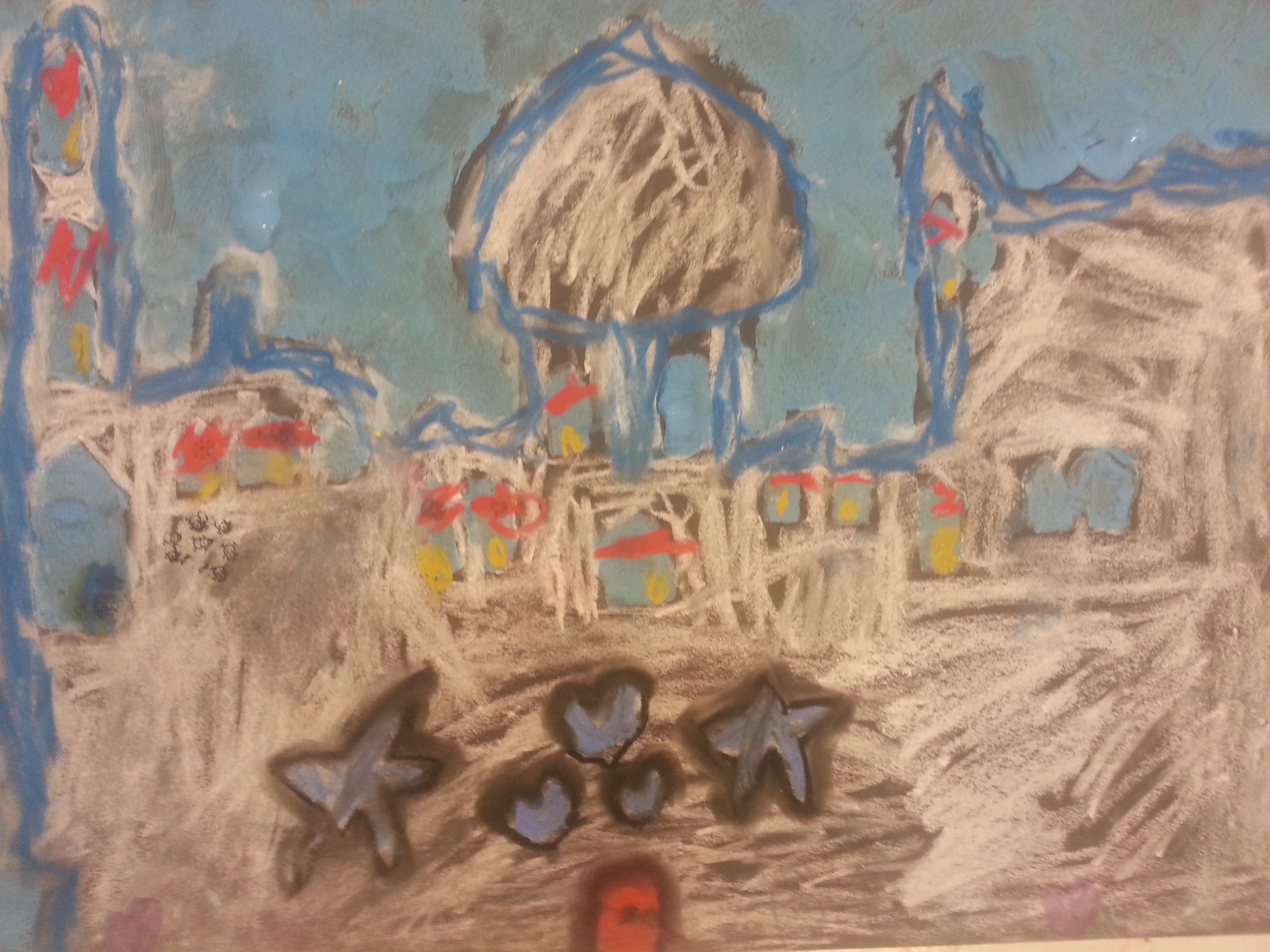 Artyfacts has added new photos .these are drawings that were made during an experiential last week …the children lay on the floor with their eyes closed and listened to a magical story and afterwards in the silence of the moment (drew what ever they felt or saw in their minds eye from the story) in their sketch books and then transferred their sketches on to A2 Paper using coloured pencils and coloured chalk. They then had the opportunity to talk about their drawings to the class